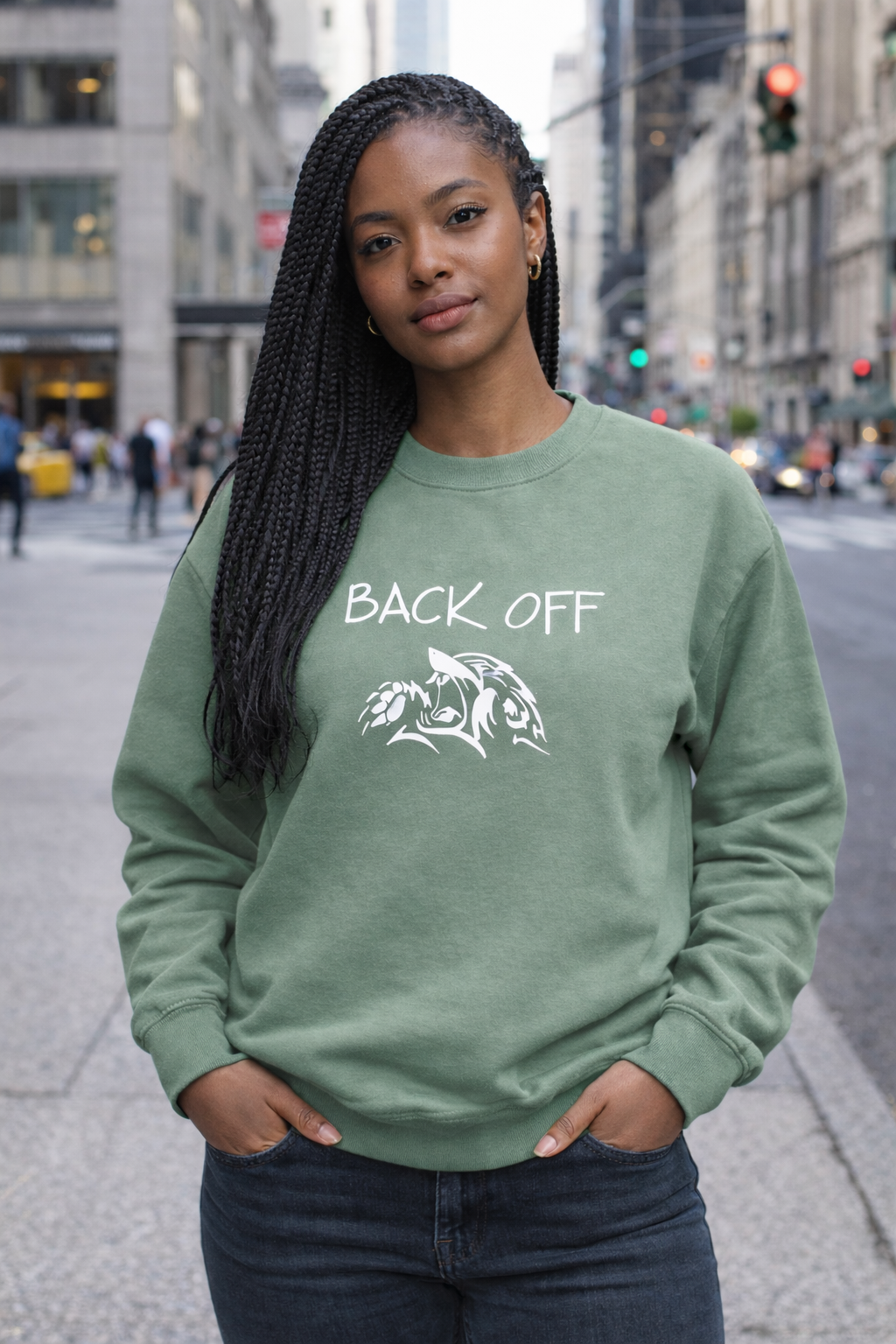 Step out with confidence and set your boundaries clear. Our "BACK OFF" Sweatshirt is designed for those who aren't afraid to show their fierce side. Combining sharp, aggressive typography with a powerful animal graphic, this is the ultimate "don't mess with me" wardrobe essential.