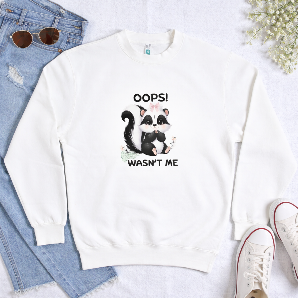 Bring a little humor and a lot of cuteness to your wardrobe with our “Oops! Wasn’t Me” Raccoon Sweatshirt. Featuring an irresistibly adorable raccoon illustration paired with a playful phrase, this sweatshirt is perfect for animal lovers, cozy days, and anyone who enjoys lighthearted style.